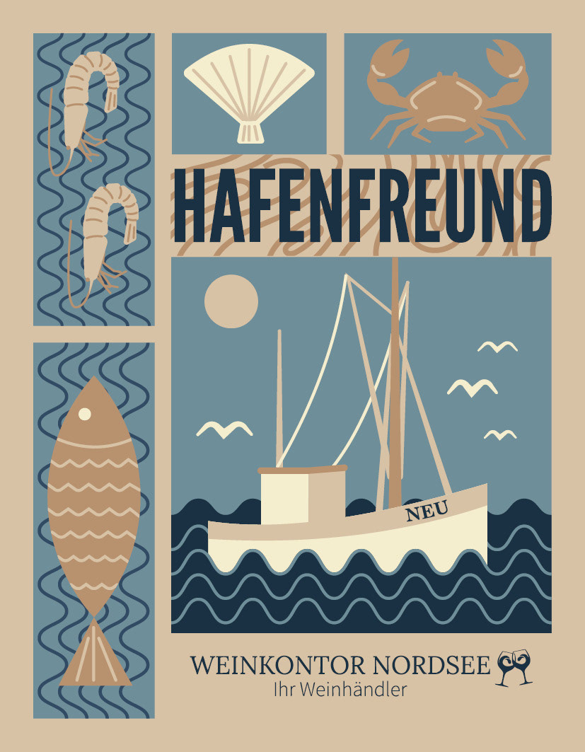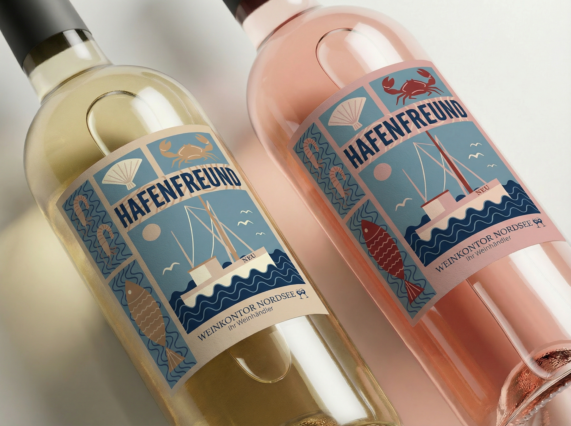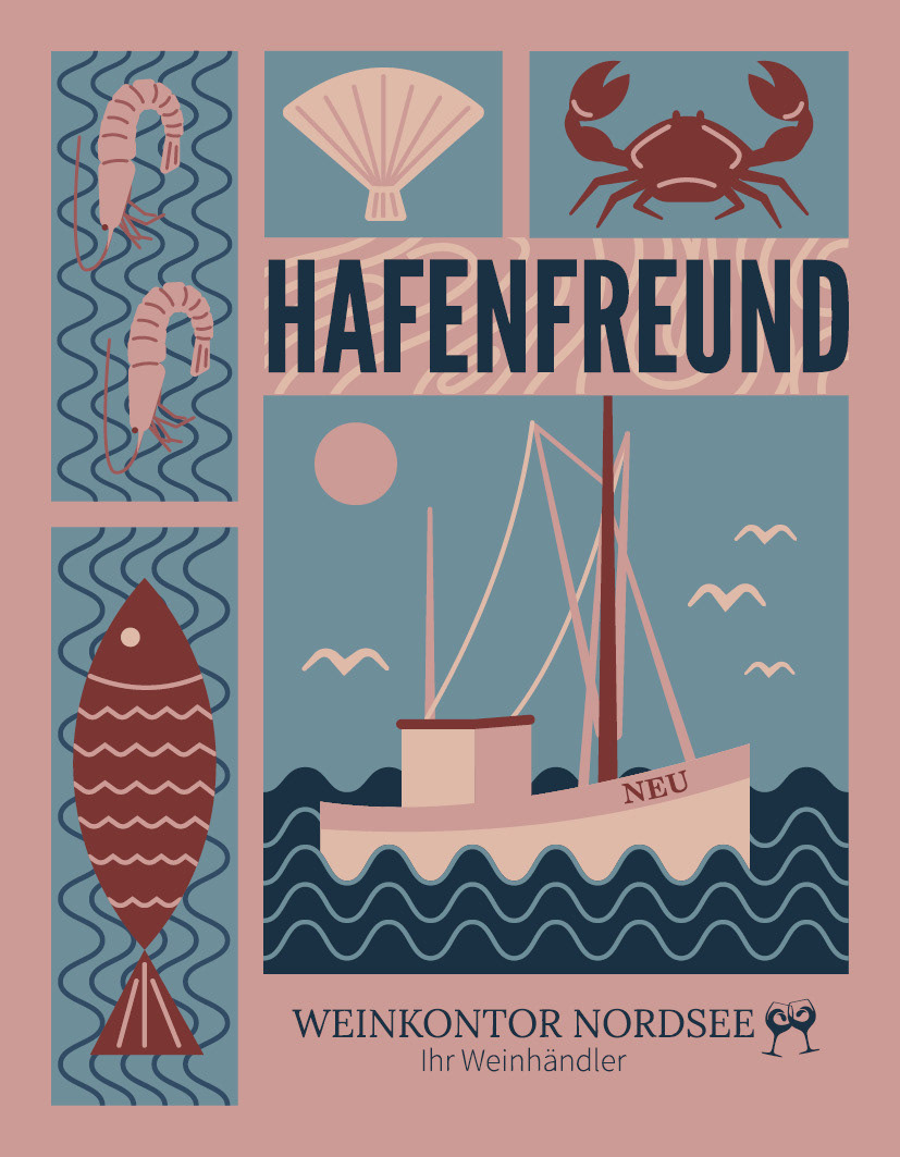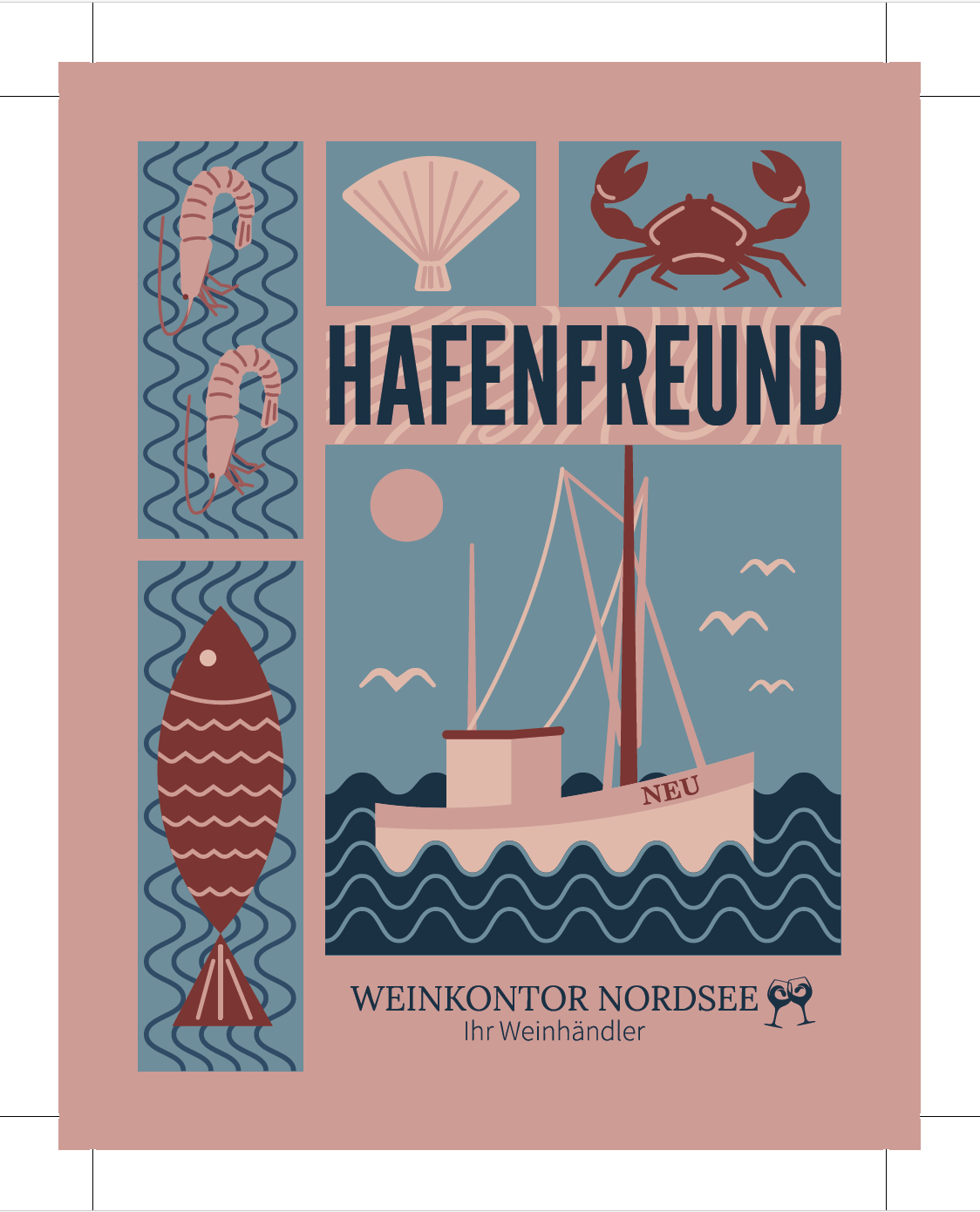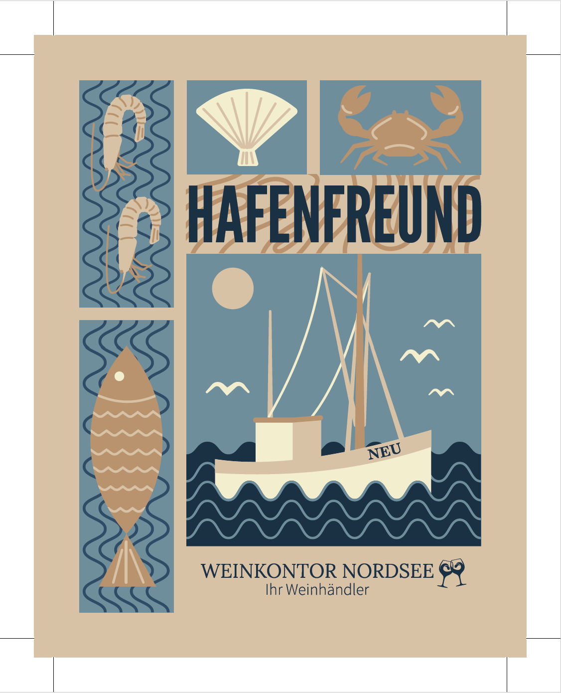 Für eine Charity-Weinaktion des Vereins Hafenfreunde Neuharlingersiel e.V. entwickelte ich eine Serie von Weinetiketten, die exklusiv über das Weinkontor Nordsee in Esens vertrieben werden. Ziel war es, ein visuell eigenständiges Design zu schaffen, das sowohl den maritimen Charakter der Nordseeküste als auch den lokalen Bezug des Projekts widerspiegelt.