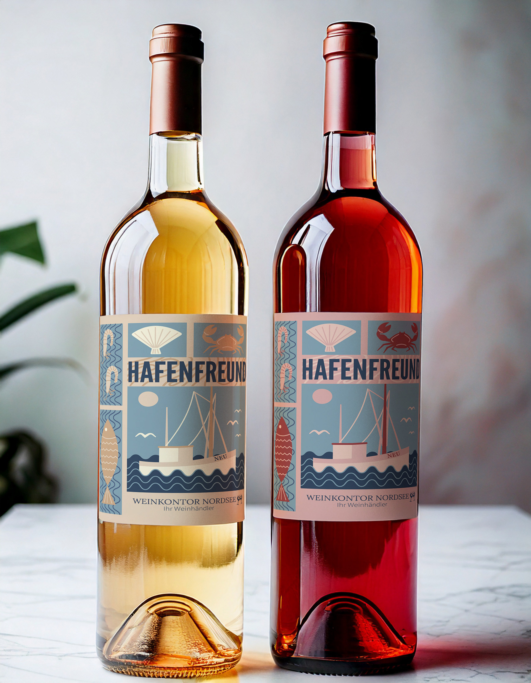 Weinetiketten für Weinhändler "Weinkontor Nordsee" in Esens .