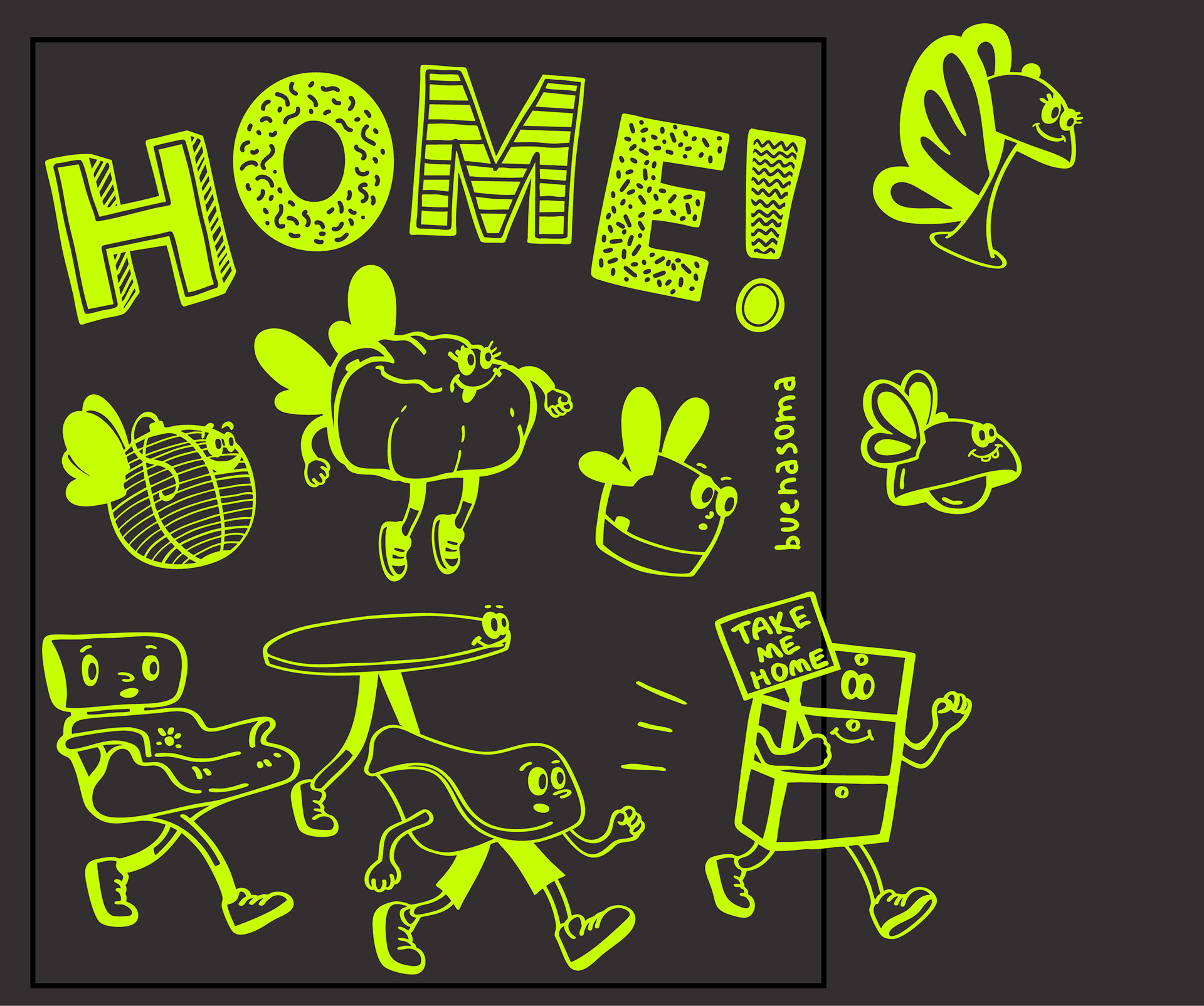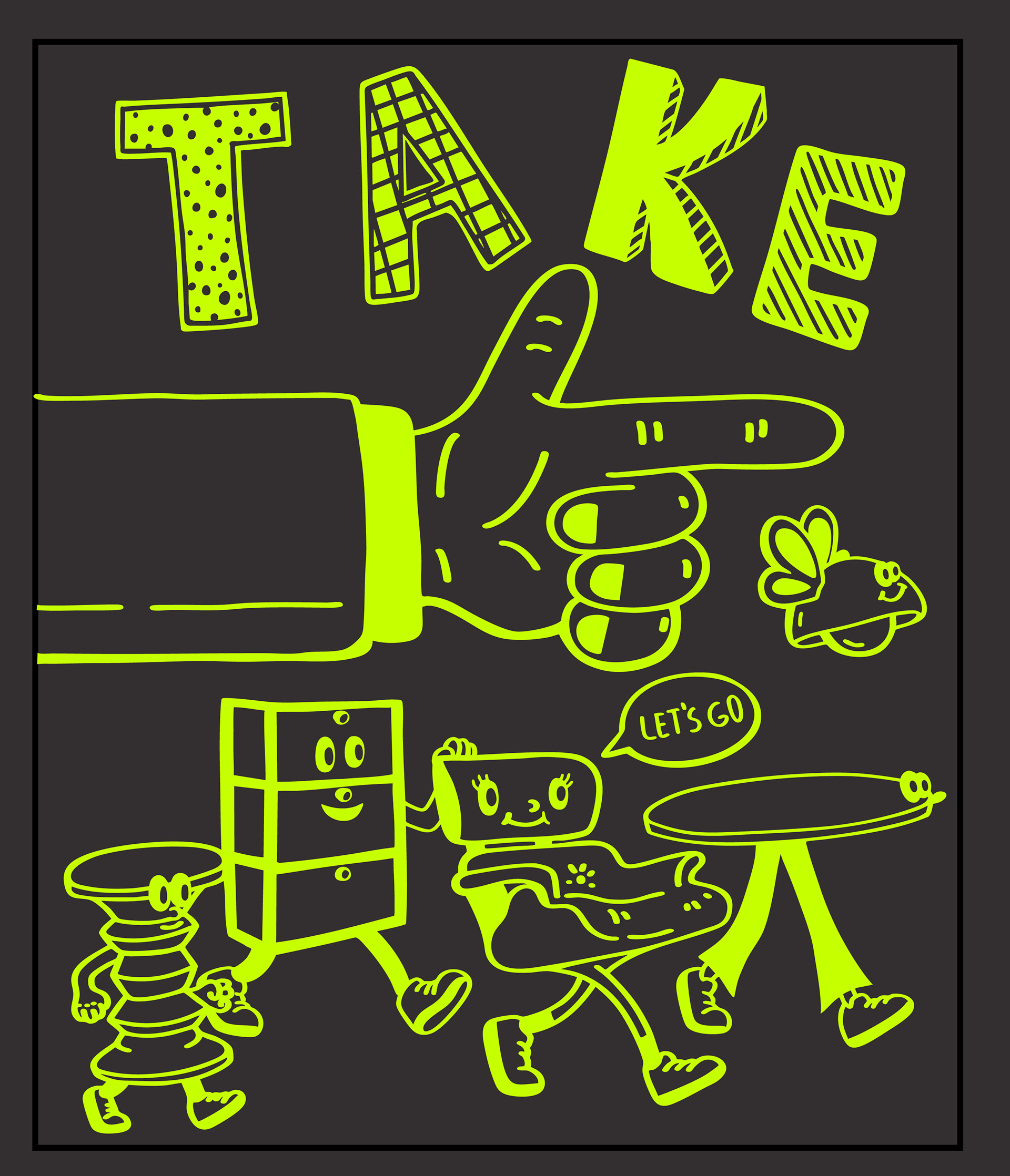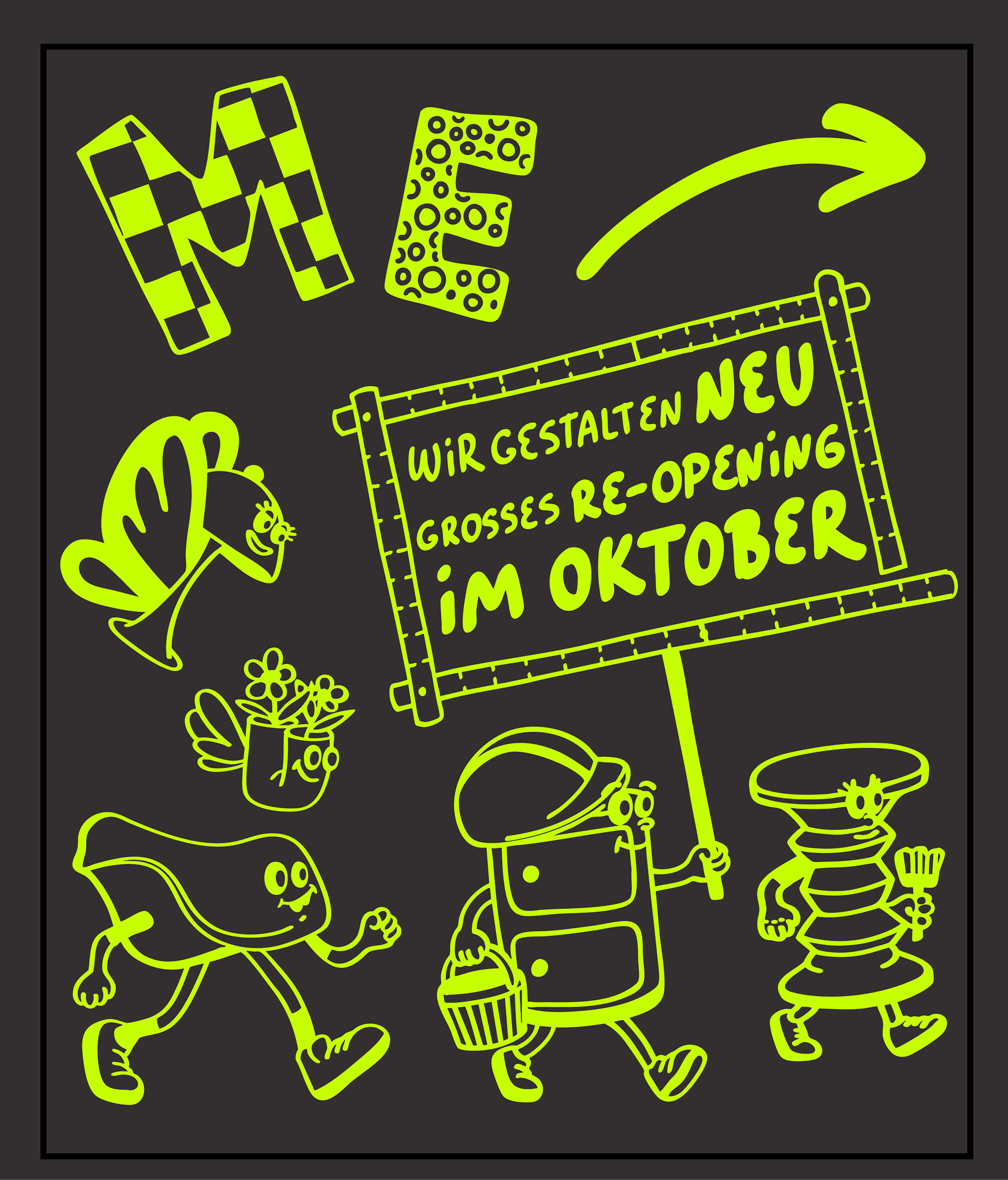 Illustration von den Schaufensteraufkleber für den Möbelgeschäft "(smow)" in Düsseldorf.