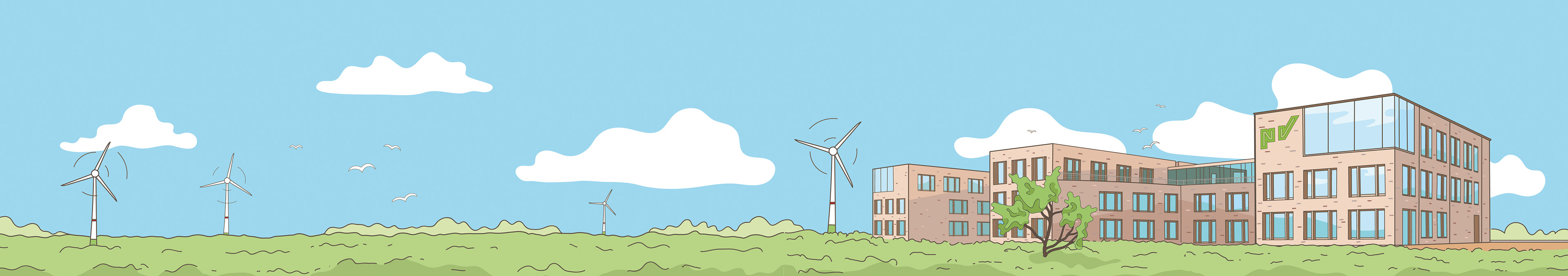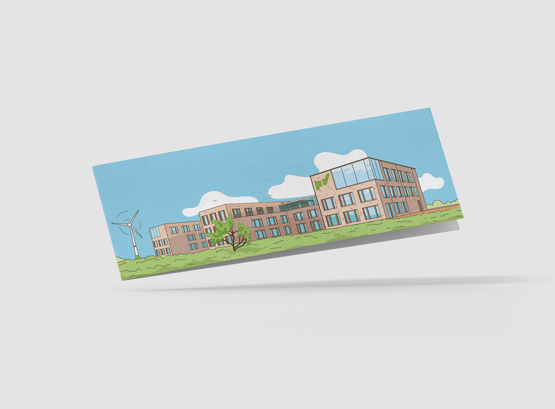 Illustration des Versicherungsgebäudes für die Grußkarten.