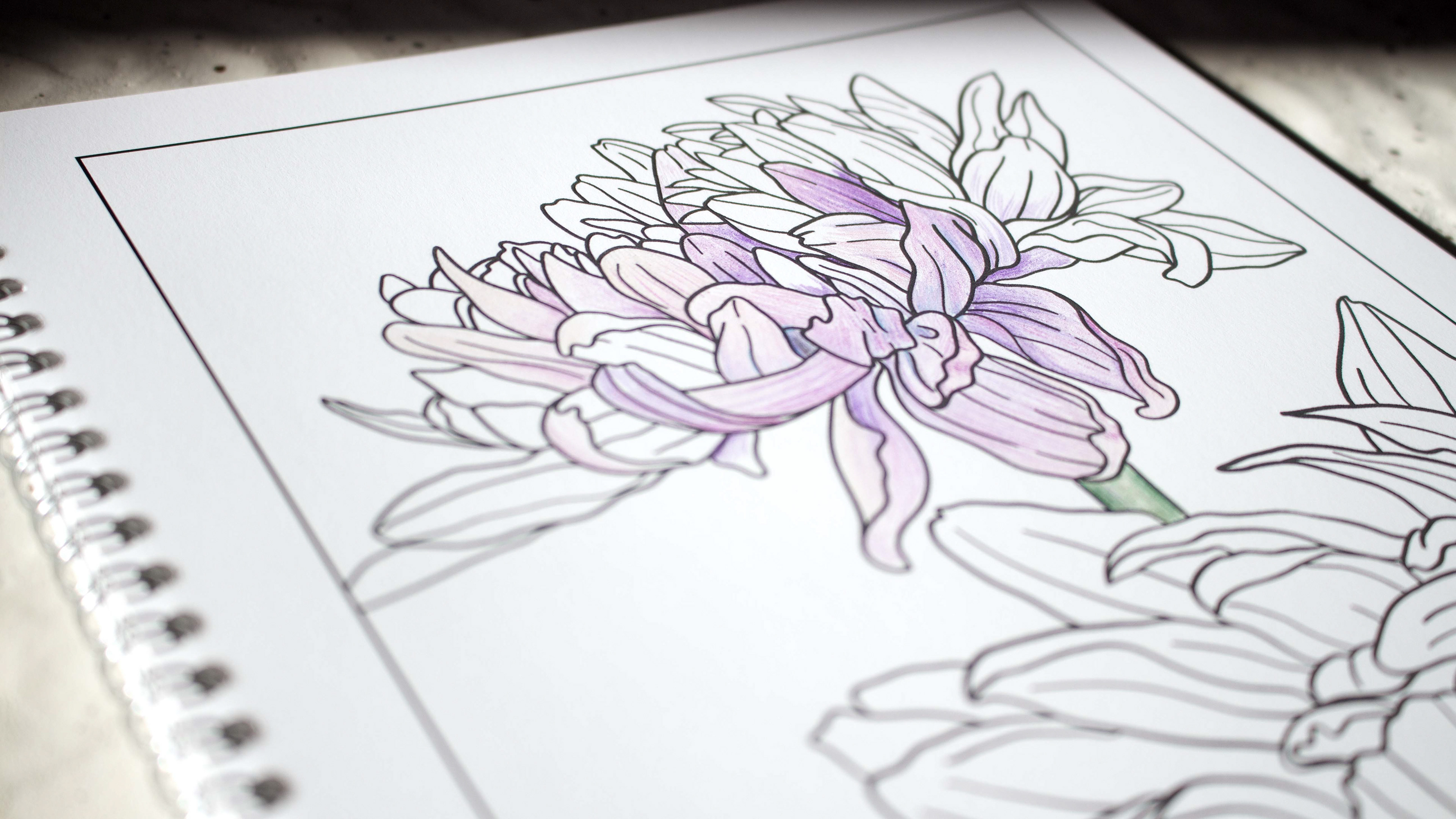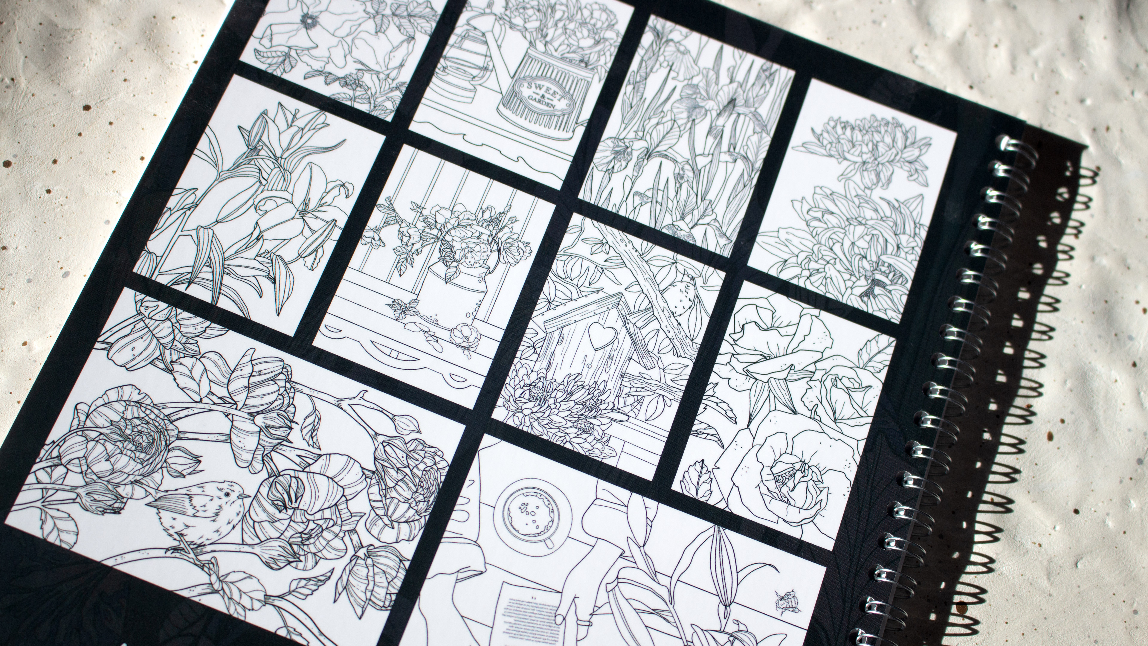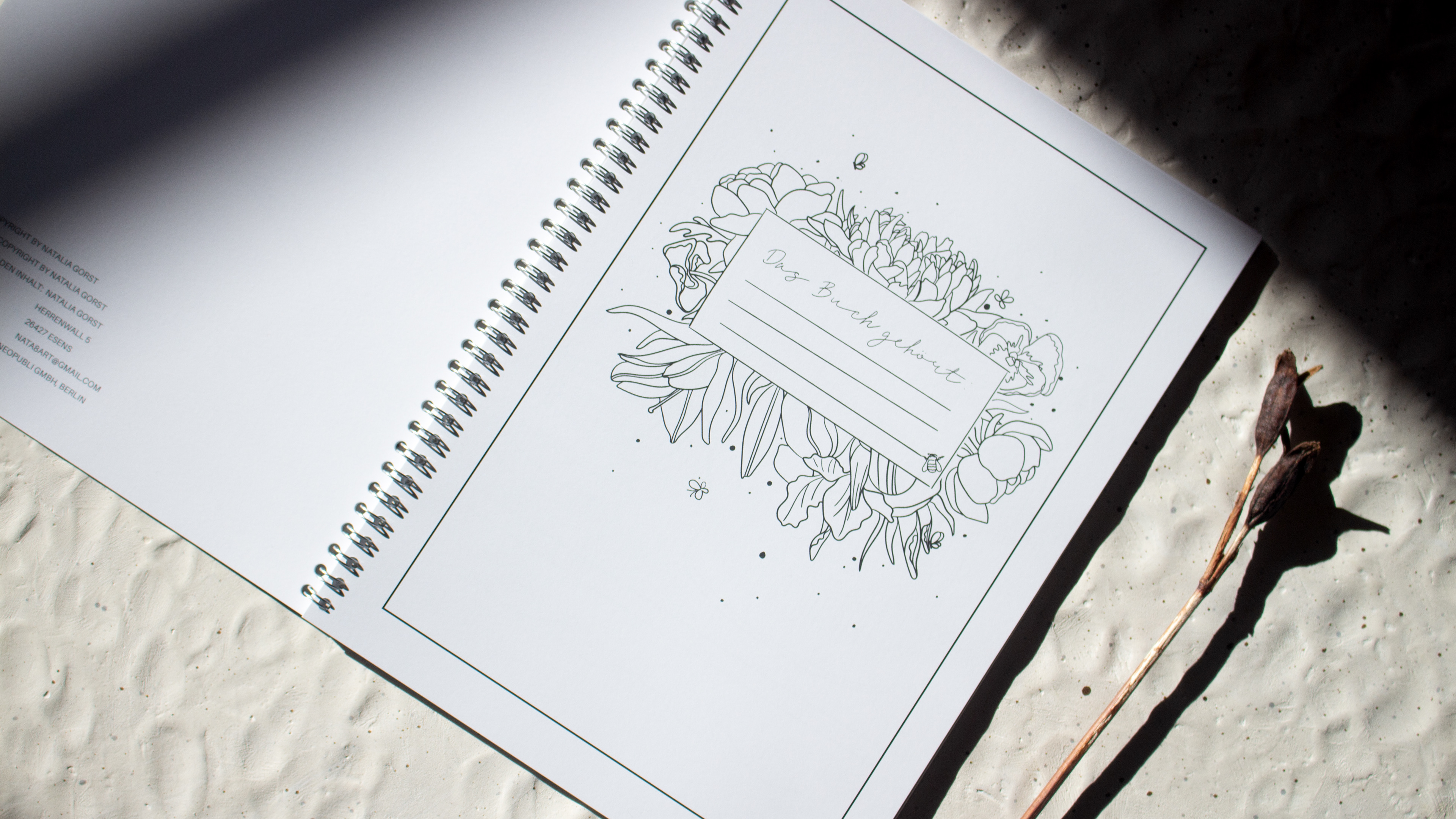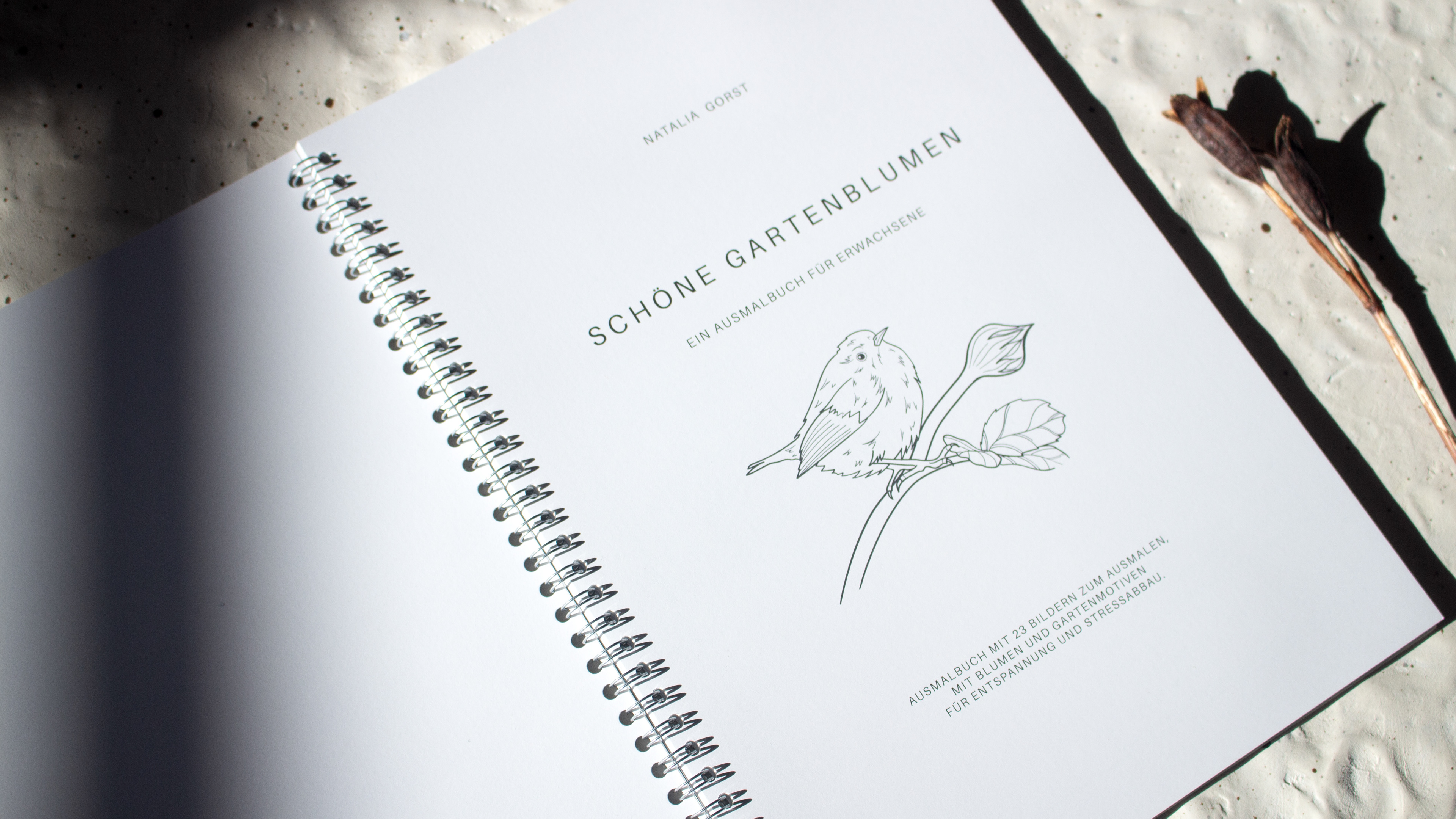 Das Ausmalbuch von Natalia Gorst enthält 23 Bilder. Zarte Blumen- und Gartenmotive strahlen Ruhe und Gelassenheit aus.